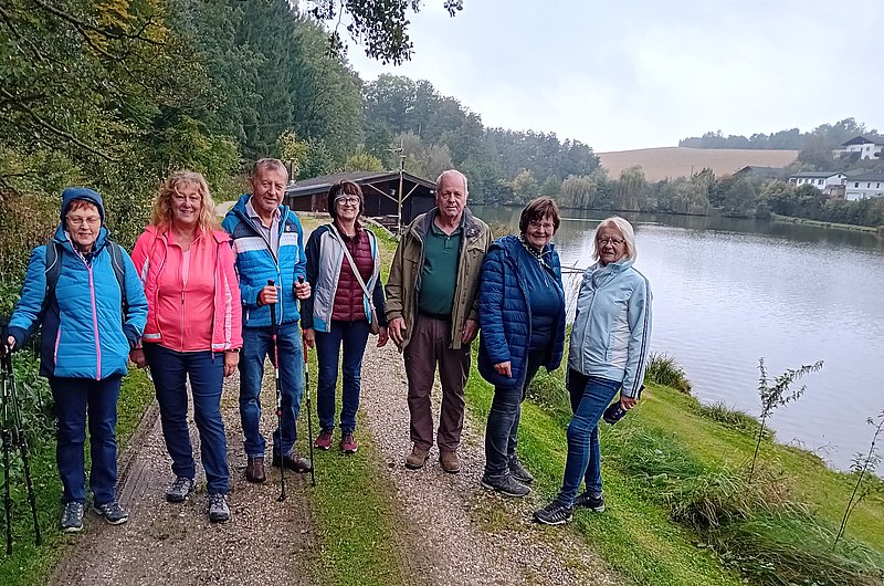 8 motivierte Wanderer erkundeten bei idealem Wetter den Badesee Weibern und die unbekannte Gegend. Nach einigen technischen und geschichtlichen Details zum Badesee und der Trattnach ging es über Wilding Richtung Geboltskirchen und über Marschalling wieder zurück zum Badesee. Auf eine Abkühlung im See wurde auf Grund der Temperaturen verzichtet. Der Abschluss fand in der Jausenstation Malvent statt.